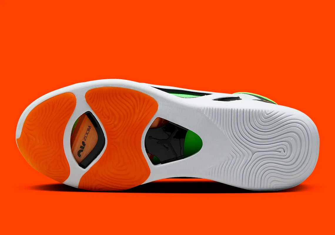 Contrairement à ce qu'on pourrait penser, ce coloris ne représente pas les couleurs des Celtics à domicile, mais semble avoir trouvé son inspiration chez un ancien modèle “player exclusive” destiné à JT, la Air Jordan 36 “Taco Jay“.