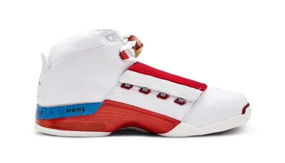 La Air Jordan 17 continue de soigner son retour pour 2024 avec la parution de ce deuxième coloris « Varsity Red » de la paire portée par Michael Jordan en 2002, lorsqu’il évoluait sous les couleurs des Wizards.