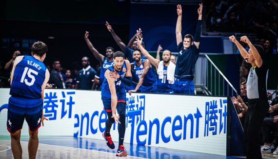 Au retour des vestiaires, Jalen Brunson et Anthony Edwards se chargent de faire grimper davantage l’avance américaine, sans que les Grecs ne parviennent à tenir le choc, explosant offensivement et défensivement. En sortie de banc, Austin Reaves et l’hyperactif Josh Hart prennent le relai des titulaires pour tuer tout suspense avant même le début du quatrième quart-temps (79-56).