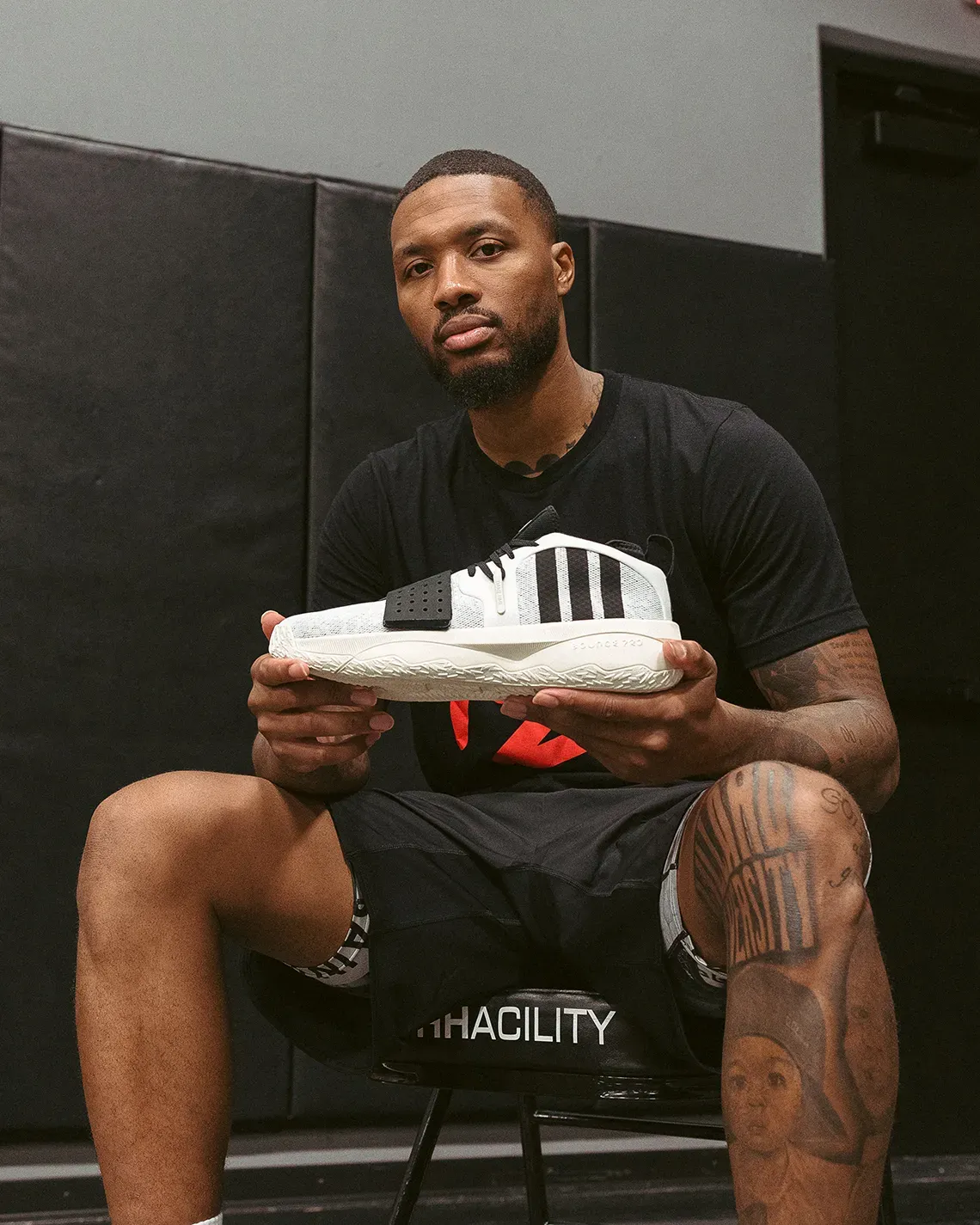 Le timing n'est pas top, mais adidas va tout de même mettre la star des Blazers à l'honneur à la rentrée avec la sortie de la Dame 8 EXTPLY, extension du modèle original sortie fin 2021 ! La tige en mesh est recouverte d'un strap sur une partie des lacets, et on distingue les trois bandes au niveau de la malléole externe. L'ensemble repose sur une semelle intermédiaire dotée de l'amorti Pro Bounce et une semelle extérieure en caoutchouc.