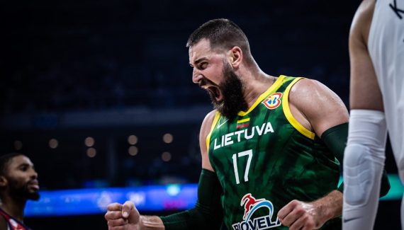 On ne rêve pas. Après dix minutes, la Lituanie mène 31-12 face aux Etats-Unis. Sous les sifflets d’un public acquis à la cause des coéquipiers d’un Jonas Valanciunas impérial au contre, les Américains sont endormis et seul Anthony Edwards est à son meilleur niveau avec 6 des 8 premiers points américains. Il faut attendre les premières rotations pour voir Cam Johnson, et toujours Edwards, alimenter la marque (39-26).