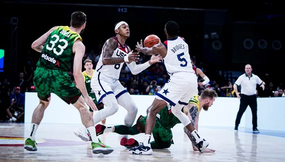 « C'est comme ça que ça doit être. On n'a pas d'autre choix ». Jalen Brunson a bien mesuré ce que Team USA représentait. Battus pour la première fois du tournoi face à la Lituanie lors de leur dernier match de la deuxième phase, les Américains ont à nouveau été bousculés dans l'agressivité, affrontant une équipe qui a su se surpasser pour l'occasion, pour finalement créer la surprise et l'emporter, 110-104.