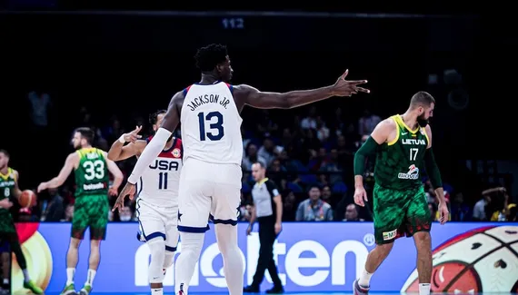 Trois petites minutes et puis s'en va. Jaren Jackson Jr. a raté son entame de match face à la Lituanie. Sanctionné pour une deuxième faute, assez grossière sur les bras de son adversaire, Jonas Valanciunas, l'intérieur des Grizzlies devait ainsi déjà regagner son banc et être remplacé par Paolo Banchero.