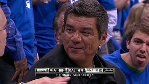 Et il prend à témoin le comique George Lopez assis à deux mètres de lui. Notez au passage que les caméras ont toujours le même effet sur les supporters les plus idiots.