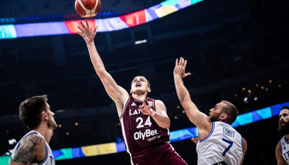 On est dans la dernière minute et l’exploit est possible pour l’Italie mais c’est Andrejs Grazulis, l’homme du match côté letton tant il a été létal (28 points à 12/13 au tir), qui douche les derniers espoirs transalpins.
