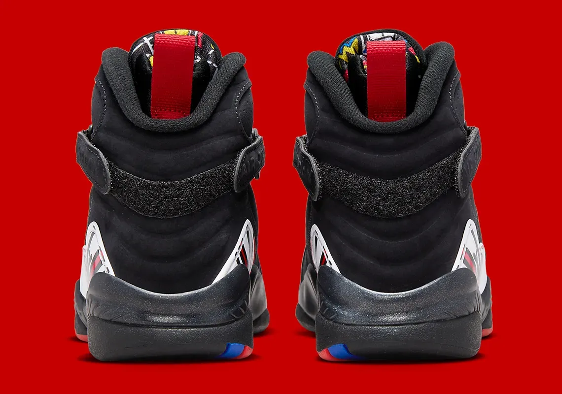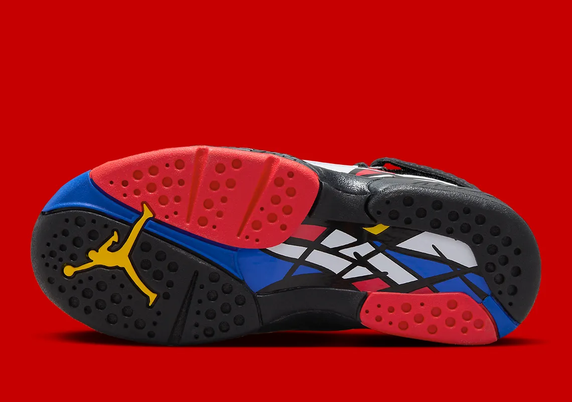 Il se distingue par une tige noire, son logo 23 en blanc aux contours rouges sur les lacets et le « Jumpman » rouge sur la languette. Un motif blanc noir et rouge apparaît également à la base de la tige. La semelle offre pour sa part des touches de noir, blanc, bleu, jaune et de rouge.