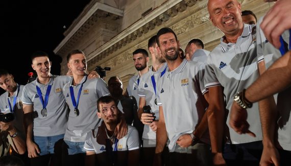 La fête s’est d’ailleurs prolongée pour l’équipe serbe, toujours en compagnie de Novak Djokovic mais également avec Nikola Jokic, qui avait de son côté préféré faire l’impasse sur la Coupe du monde après la très longue saison (et le titre) des Nuggets, venu donc fêter la médaille d’argent de ses camarades.