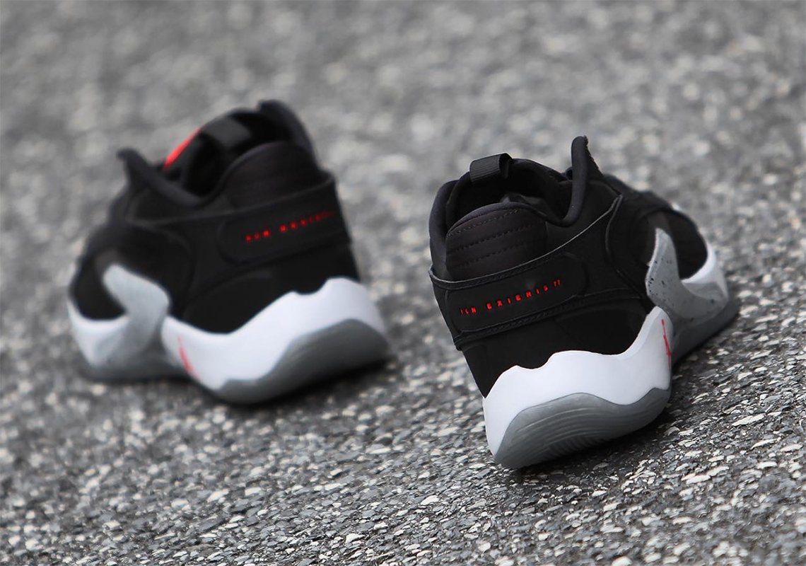 La tige noire dotée de superpositions en nubuck est contrastée par ses notes de rouge, sur la languette et sur sa devise écrite en latin, “non desistas non exieris” (“N’abandonne jamais, ne te rend jamais”) au niveau du talon. L’ensemble repose sur une semelle blanche et grise, également complété par deux logos « Jumpman » en rouge.