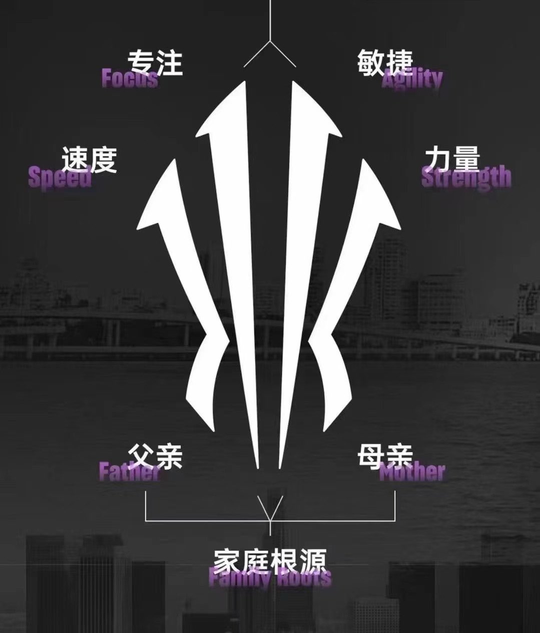 Les quatre piliers supérieurs représentent les qualités de Kyrie Irving en matière de basket : vitesse, concentration, agilité et force. Les bases de ces quatre piliers reflètent les membres de sa famille. La disposition de ces deux « K » est également inspiré du logo d’Anta Sports.