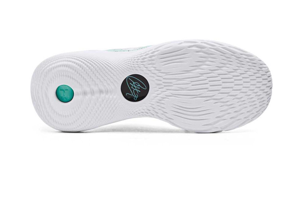 La technologie UA Warp reste présente à la base de la tige, assortie d’une bande noire sur le dessus du pied. La semelle est quant à elle dotée d’un système d’amorti UA Flow à double densité