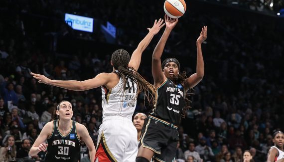 Malgré les 29 points de Kelsey Plum, les Aces n’auront pas survécu aux 27 points de Jonquel Jones et aux 20 de Breanna Stewart, ainsi qu’à l’adresse extérieure retrouvée de New York (13/30).