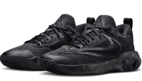 En marge de la Zoom Freak 5, que Nike continue de soigner en multipliant les coloris, sa petite sœur, la Giannis Immortality 3 en est déjà à son cinquième coloris. La nouvelle version de la ligne signature alternative de Giannis Antetokounmpo opte ici pour le “Triple Black” avec donc un modèle entièrement noir, sur la tige, où l’on distingue toutefois le “Swoosh inversé”, comme sur la semelle.