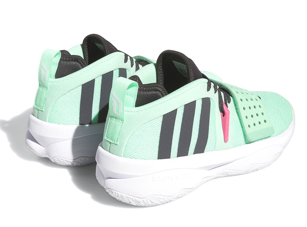 En attendant un coloris vert et violet en référence au nouveau chapitre que Damian Lillard va ouvrir avec Milwaukee ce soir, adidas a sorti cette Dame 8 EXTPLY « Dame’s Time », avec du vert pâle comme couleur principal.