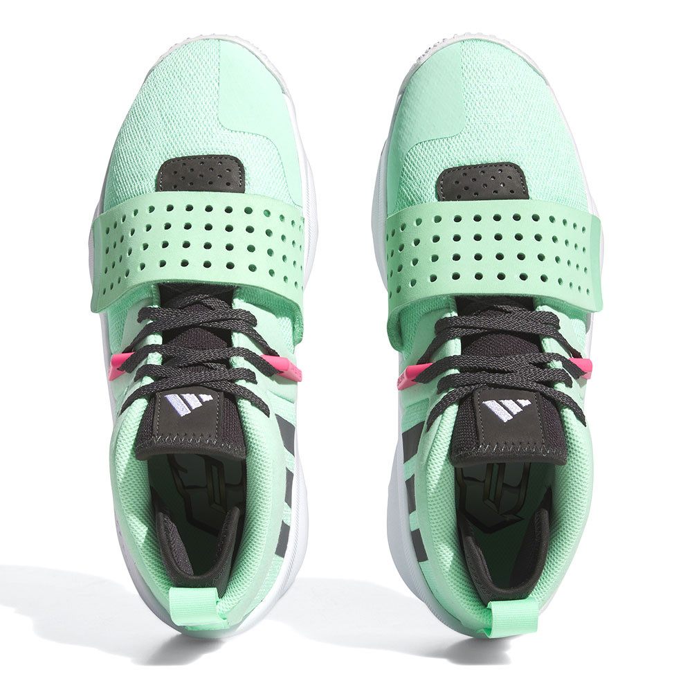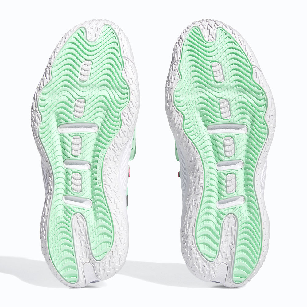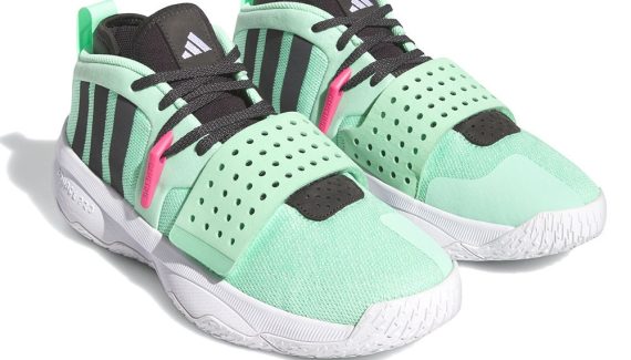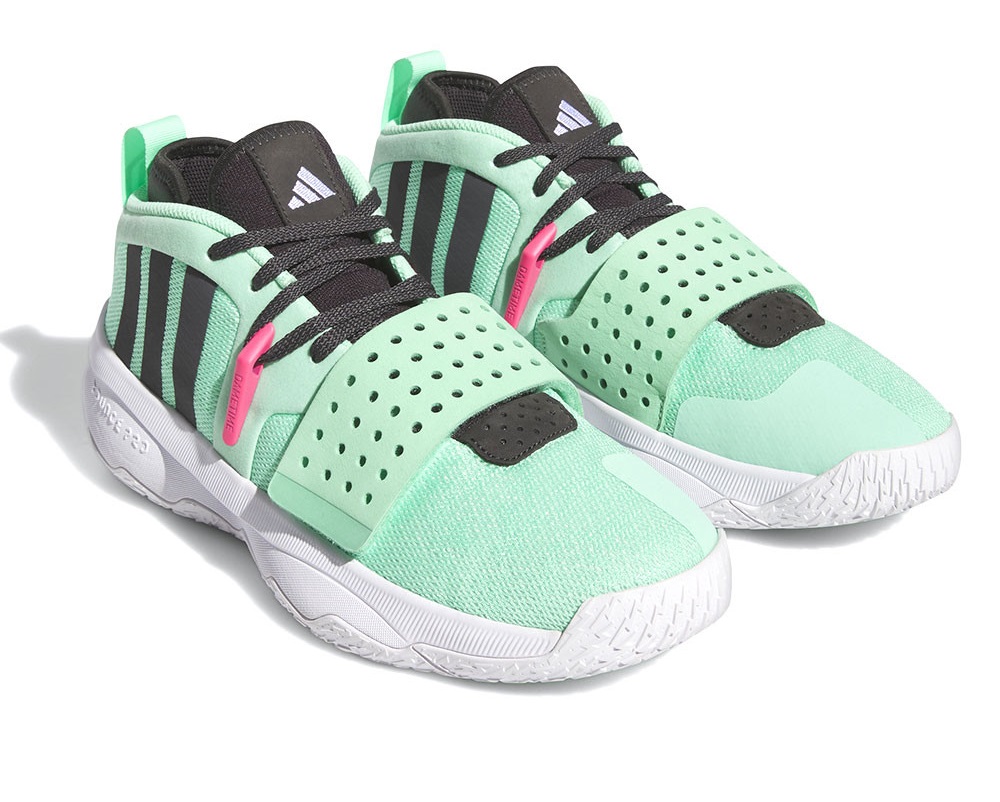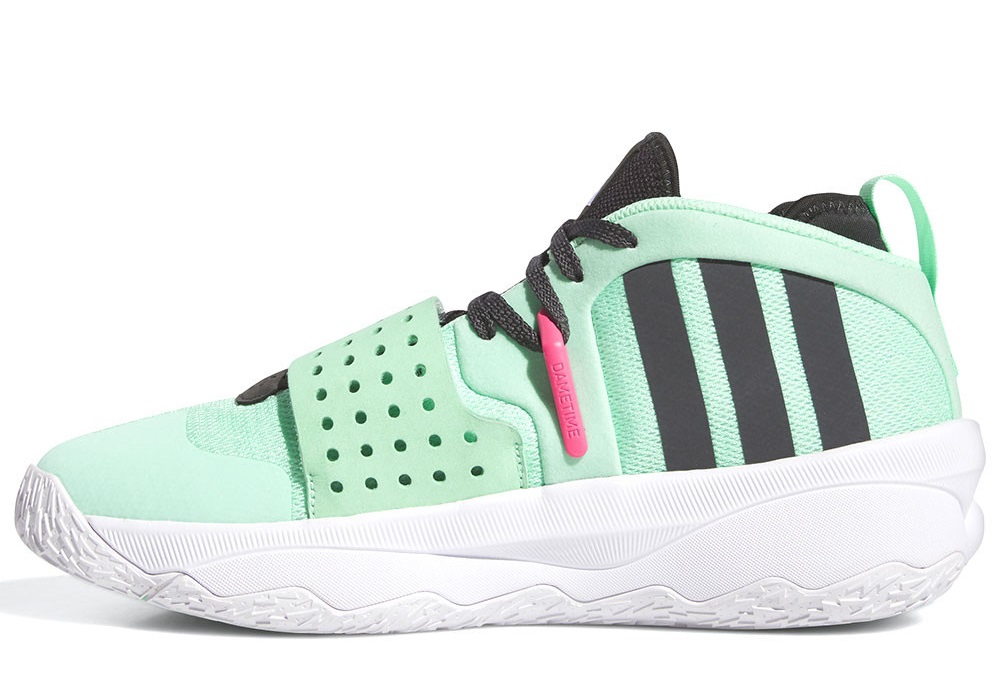 En attendant un coloris vert et violet en référence au nouveau chapitre que Damian Lillard va ouvrir avec Milwaukee ce soir, adidas a sorti cette Dame 8 EXTPLY « Dame’s Time », avec du vert pâle comme couleur principal.