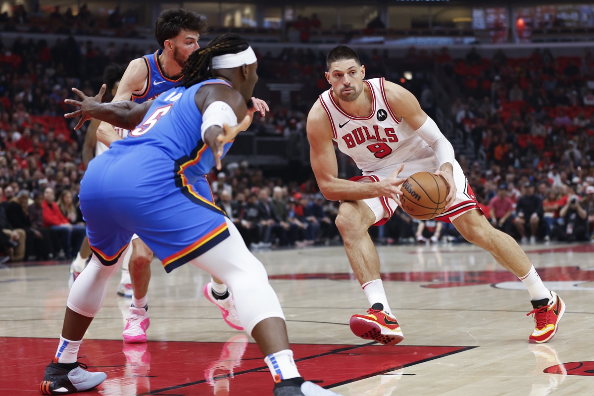 Nikola Vucevic prend une faute technique pour avoir lancé le ballon sur le socle du panneau, après un panier de Shai Gilgeous-Alexander. Les deux actions suivantes des Bulls sont des shoots ratés, et la star du Thunder marque encore. Même si le score est toujours serré, l’intérieur rejoint le banc frustré, après avoir passé plusieurs longues minutes sans avoir vu le ballon.