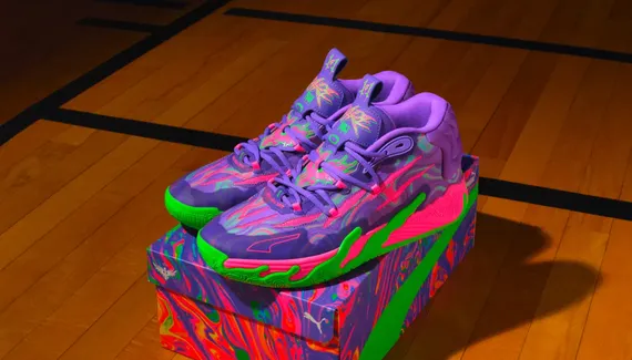 La collection MB dessinée pour LaMelo Ball a fait de ses coloris excentriques sa marque de fabrique et la MB.03 ne dérogera pas à la règle. Après une première version « LaFrancé » en vert fluo, c'est cette fois un coloris « Toxic » qui vient replacer la MB.03 au cœur de l'actualité.