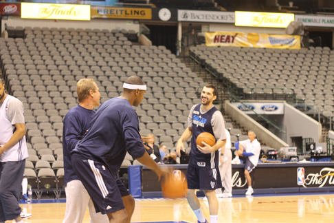 Aujourd’hui, on a tout de même senti énormément de fatigue, surtout du côté des Mavericks. DeShawn Stevenson et Shawn Marion boitaient et n’ont du coup pas pris part aux différents exercices et jeux qui ont lieu des deux côtés du terrain.
