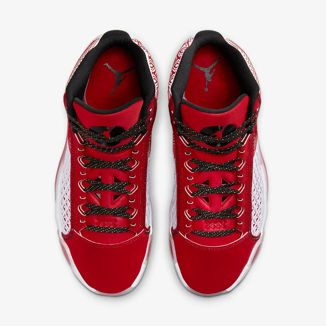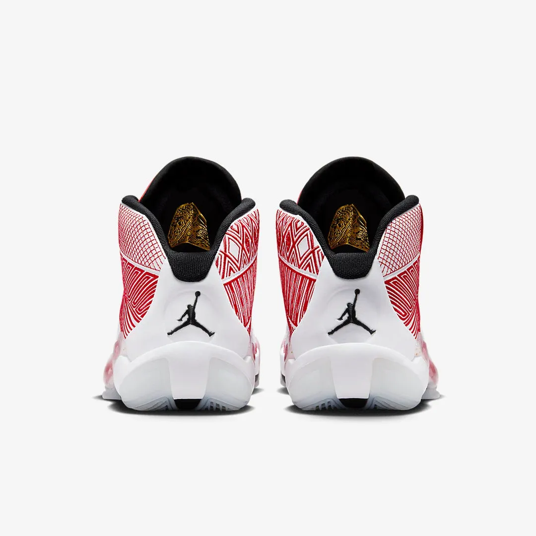 Présentée en test dimanche dernier, la Air Jordan 38 va bientôt voir sa collection être complétée par un nouveau coloris. Il s'agit du mode « University Red », et cette 38e Air Jordan se pare de rouge et blanc pour ses différents revêtements, avec des finitions en noir.
