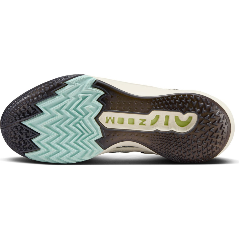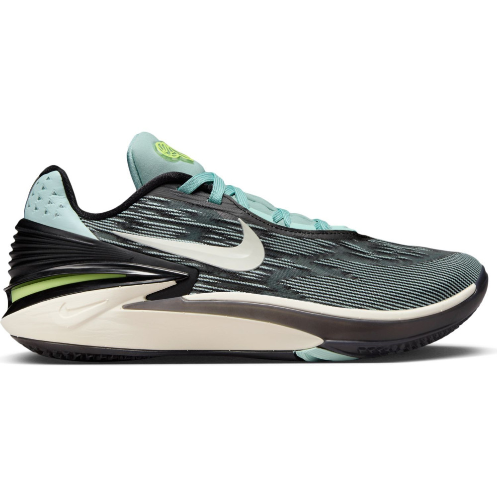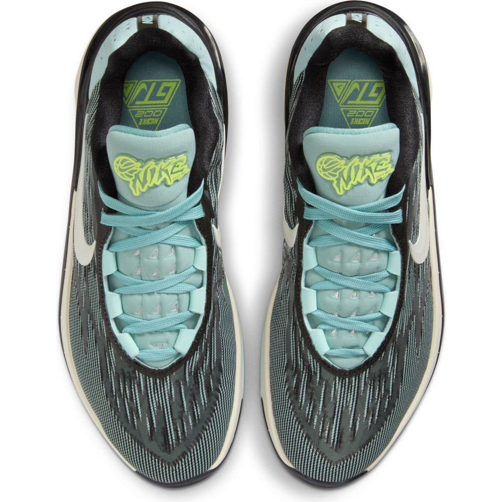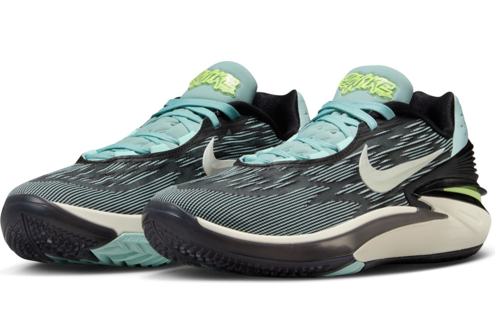 Celui-ci complète la collection avec une tige principalement noire, sur laquelle le « Swoosh » ressort en blanc, assortie de compléments en bleu ciel et en vert. Le logo Nike apparaît ainsi en vert sur une languette entièrement bleu ciel.