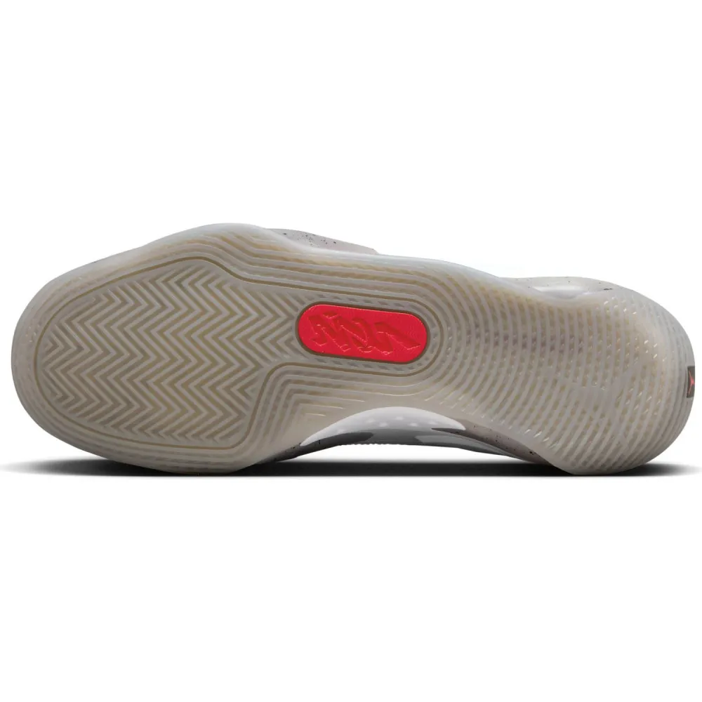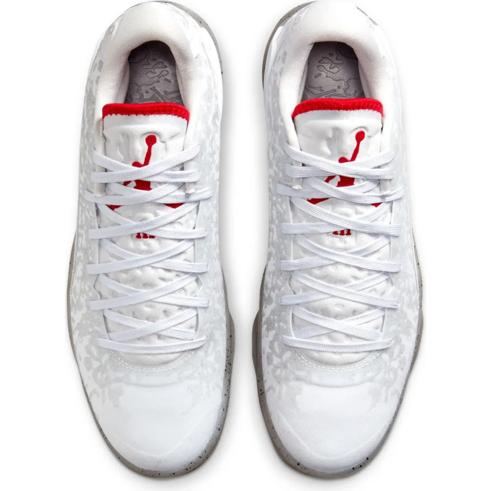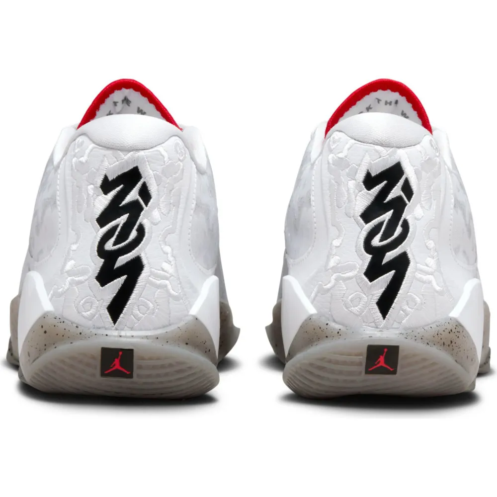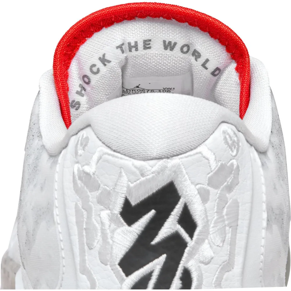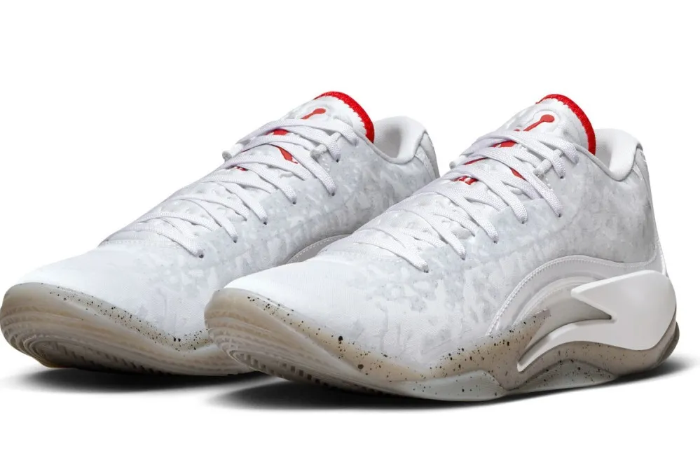 Pour cette dernière mouture baptisée « Fresh Paint », Jordan Brand est parti sur du classique avec un brin d'inspiration « Made in Chicago ». La tige principalement blanche est ici complétée de finitions en noir, comme sur le logo « Zion » sur le talon, et rouge », au niveau de la languette notamment. L'ensemble repose sur une semelle extérieure beige translucide tachetée de noir.