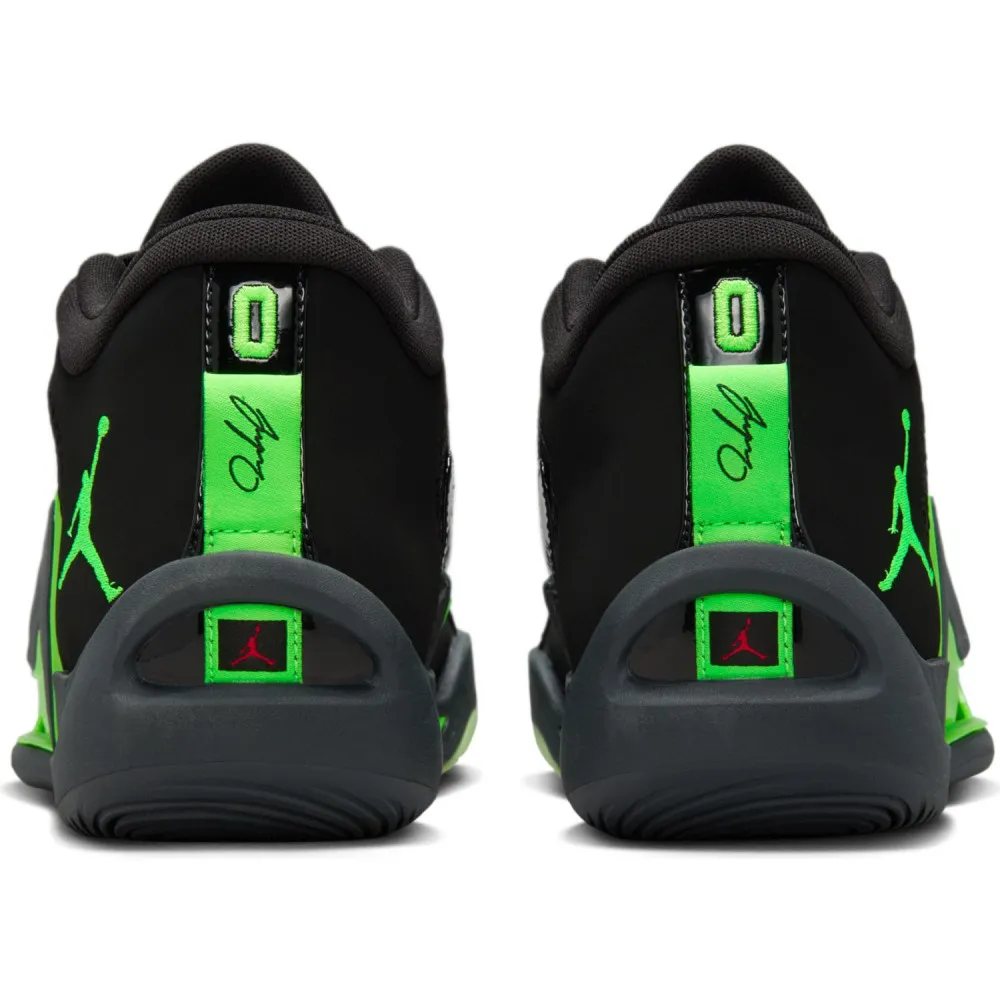 Ce nouveau coloris se présente avec une tige principalement noire assortie de touches vertes, la couleur principale de l'équipe de Boston. On en retrouve notamment sur l'avant du pied, au niveau de la semelle mais aussi sur le « Jumpman » ressortant sur la malléole ou les contours du logo « JT » présent sur la languette.