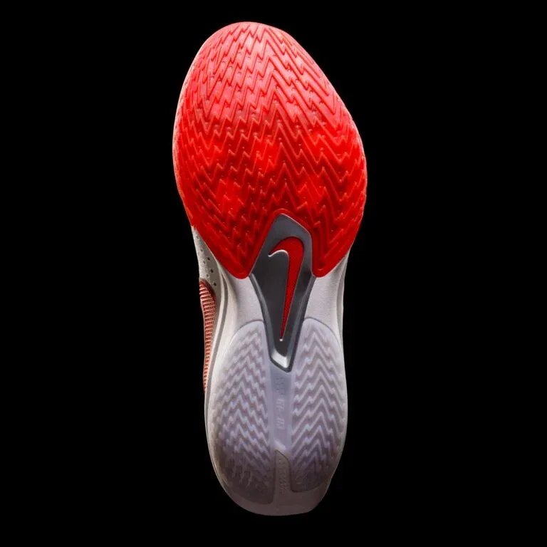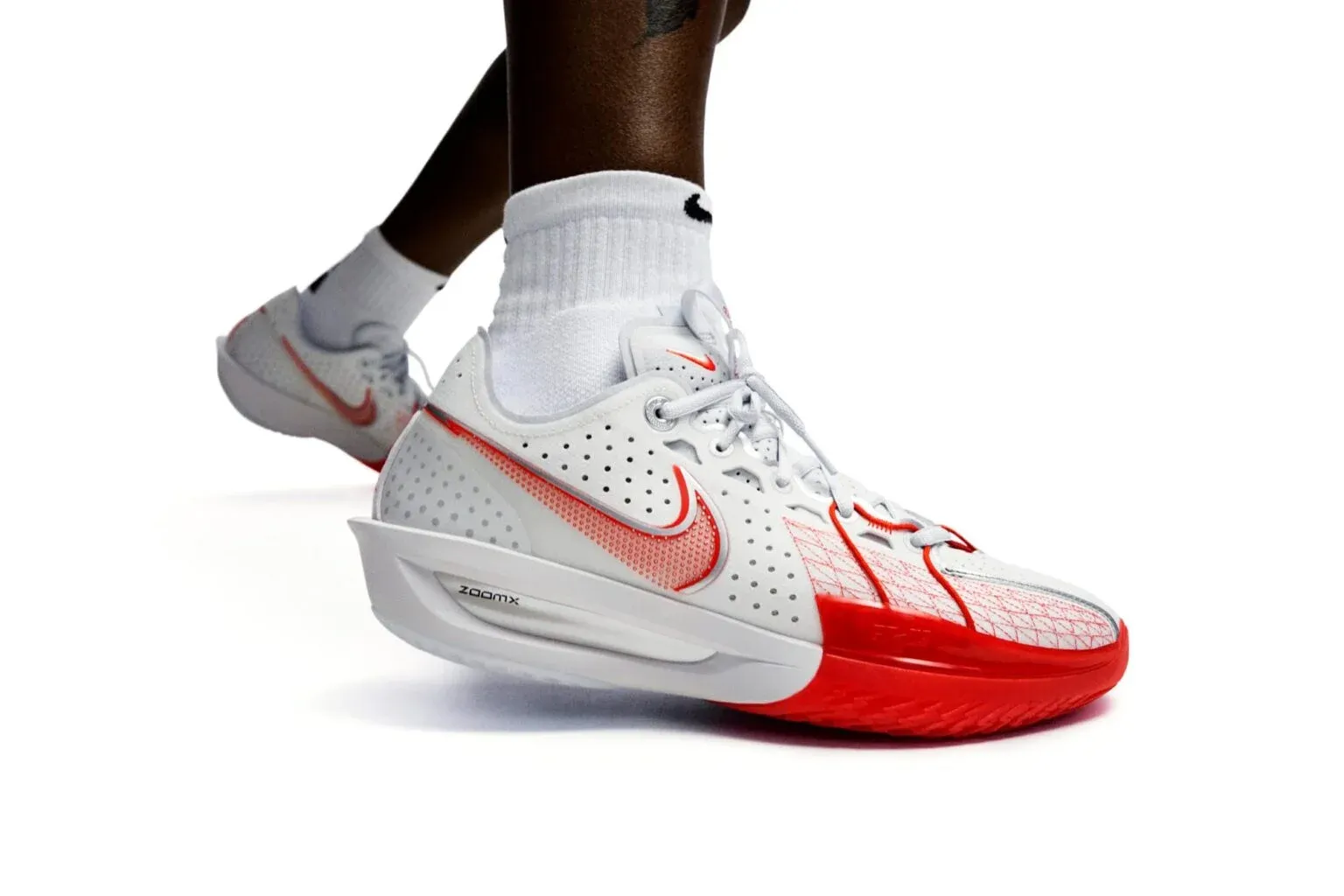 Le design et la coupe, plus basse, ont été repensés et la tige est complété par des câbles Flywire pour un meilleur maintien à l'avant du pied et des parois en TPU. Mais la grande nouveauté de la Nike GT Cut 3, qui est aussi plus légère, réside dans sa semelle intermédiaire qui sera composée d'une toute nouvelle mousse pour une chaussure de basket, la Zoom X. Sur ce premier coloris, on part sur du blanc et orange avec des finitions en gris.