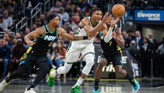 Il n’a manqué que la victoire et surtout réduire les ballons perdus (8 au total). Giannis Antetokounmpo a surtout gâché deux possessions importantes dans les dernières secondes. La première, c’est une passe totalement ratée vers Brook Lopez. La seconde, il fait la différence sur un “spin move” mais ne shoote pas dans la foulée. Bennedict Mathurin lui pique la balle dans les mains.