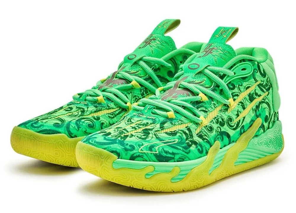 Puma va encore mettre le paquet en multipliant les coloris « osés » et c’est ce qui fait tout le charme de la collection MB, qui fait partie des modèles les plus plébiscités sur le marché. Les deux premières versions « LaFrancé » en vert fluo et « Toxic » en violet, rose et vert, ont annoncé la couleur.