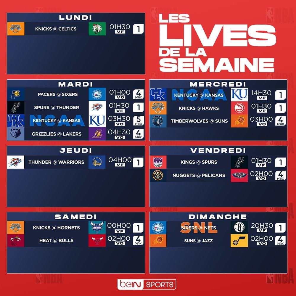 Le même soir, on suivra également les retrouvailles entre les Lakers et les Grizzlies. Le lendemain, les Suns se frotteront eux aux irrésistibles Wolves, tandis que les Hawks et les Knicks se retrouveront dans une affiche qui sent bon les playoffs 2021. Ce week-end, le Bulls/Heat attirera notre attention, au même titre que le Nets/Sixers en “prime time” dimanche soir. L’occasion de revoir Joel Embiid contre Ben Simmons…