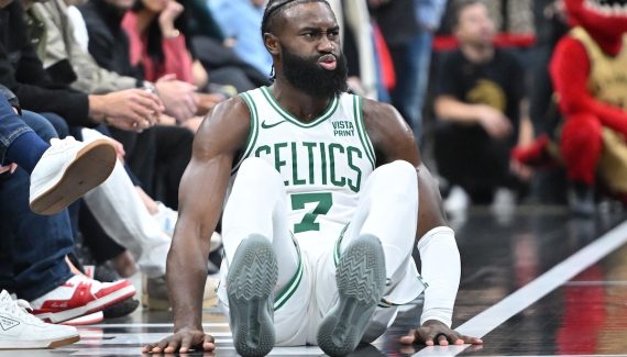 Une tentative de démarquage qui fait mal. Sur une remise en jeu à la toute fin de la rencontre entre Raptors et Celtics, Jaylen Brown a cherché à se libérer de son défenseur. Mais il a glissé sur le parquet et s’est fait mal.