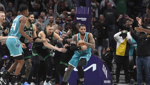 Pendant que ses coéquipiers accusent le coup d’un “back-ot-back”, Jayson Tatum prend le match à son compte, et les Celtics s’offrent donc 18 points d’avance, avant d’atteindre la pause avec 11 points d’avance. Puis Charlotte va grignoter son retard, minute par minute, jusqu’à ce “money time” où l’imposant Mark Williams arrache un rebond offensif après s’être fait méchamment bâcher. Il met dedans dans un délire indescriptible pour revenir à -2 (108-106).