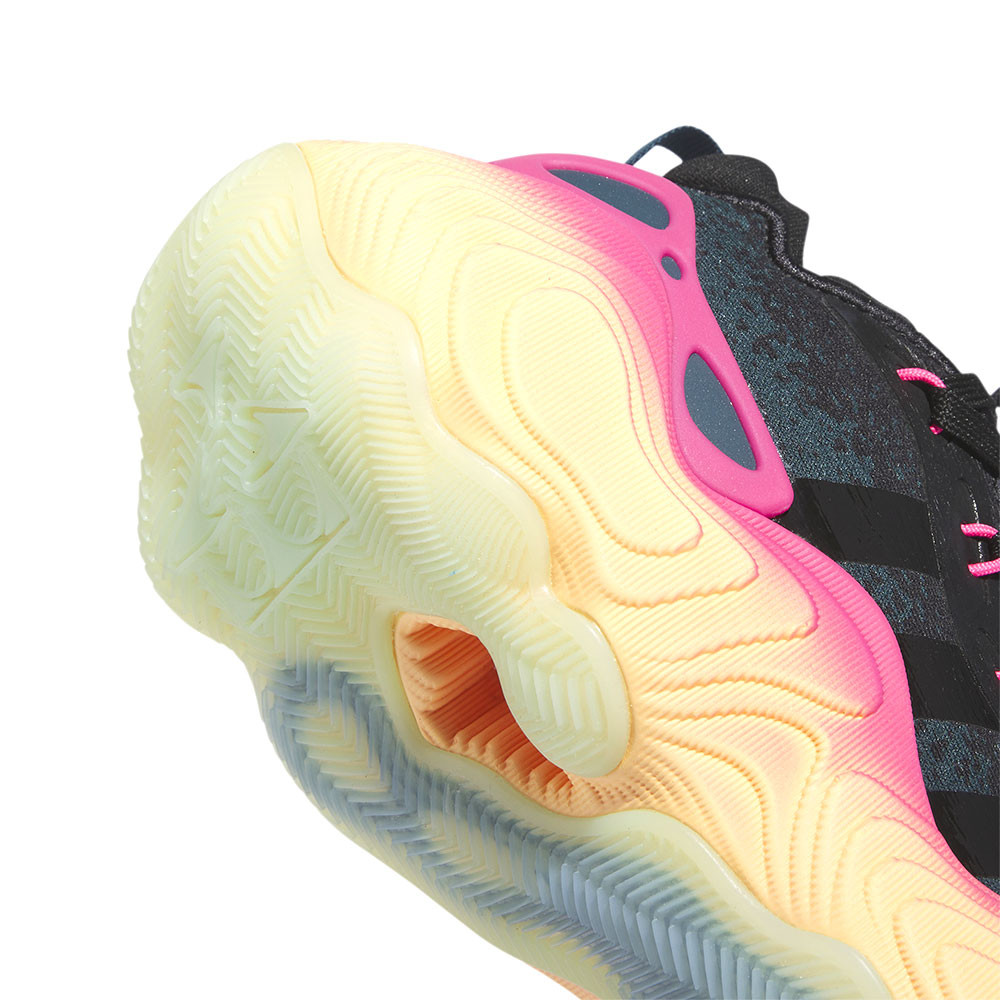 Le design de la tige est assez classique, principalement en mesh avec un renfort en TPU à l’arrière et de fines protections à l’avant. Le choix du design futuriste pour orner la tige, sous forme de pixels, et surtout la semelle inspirée de la claquette Adilette 22 forment les touches d’originalité de ce modèle.