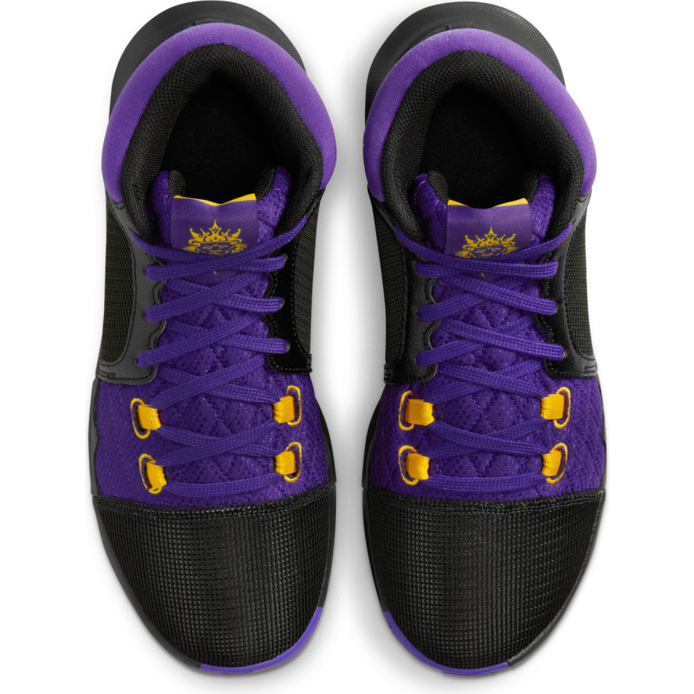 La LeBron Witness 8, chaussure signature « secondaire » de LeBron James, vendue à un prix plus abordable, continue d’être mise en avant par Nike ces dernières semaines. En témoigne la sortie de ce cinquième coloris, sans aucun doute le plus attendu puisqu’il s’agit du coloris « Lakers » avec lequel ce modèle avait initialement été dévoilé.