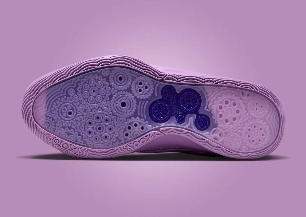 Sur ce modèle qui rend hommage à la grand-mère de la superstar des Suns, on retrouve notamment un violet foncé sur la languette, les lacets et le col de la paire. La partie en mesh de la tige ressort en zébré avec à nouveau deux teintes de violet. Le reste apparaît sur un violet pâle bien plus clair, notamment présente sur une majeure partie de la semelle.