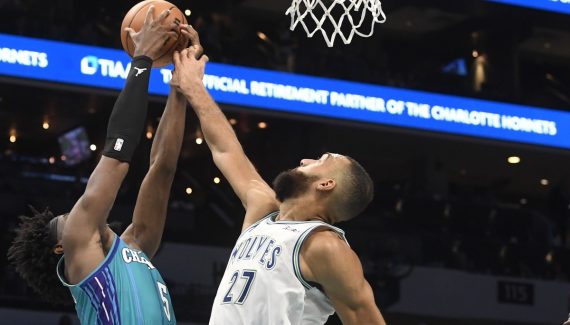 On a d’abord pensé qu’il n’allait marquer que sur dunk. Mais Rudy Gobert a fini par scorer « régulièrement », sans martyriser le cercle des Hornets. Sur ses 10 tirs inscrits dans la soirée, le pivot des Wolves a dunké… à huit reprises, un record personnel depuis qu’il porte le maillot de Minnesota.