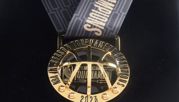 À quoi ressemble la NBA Cup, le trophée remis aux vainqueurs du “In-Season Tournament” ? On en avait déjà une idée puisque cette coupe est dessinée au centre de tous les parquets pour les rencontres du tournoi NBA. Mais la ligue vient de la dévoiler pour de bon, ainsi que le trophée de MVP, les médailles remises à chaque joueur, mais aussi des ballons pour chaque sélectionné dans le meilleur cinq du tournoi.
