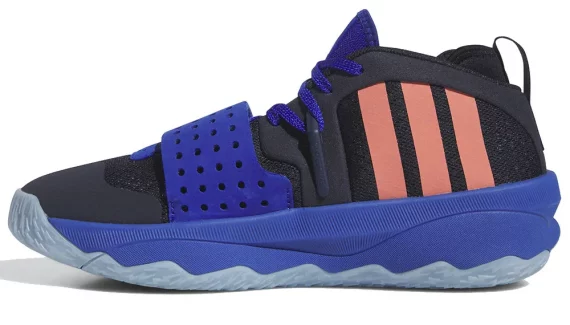 Baptisé « Dame’s Orbit », comme pour viser la lune, celui-ci se distingue par ses couleurs bleu nuit et noir pour arborer la tige, et dispose pour seuls contrastes les trois bandes de la marque adidas ressortant en beige, ainsi que le logo du joueur sur la tirette. La semelle intermédiaire bleu nuit repose sur une semelle extérieure d’un bleu gris sur les parties extérieures.