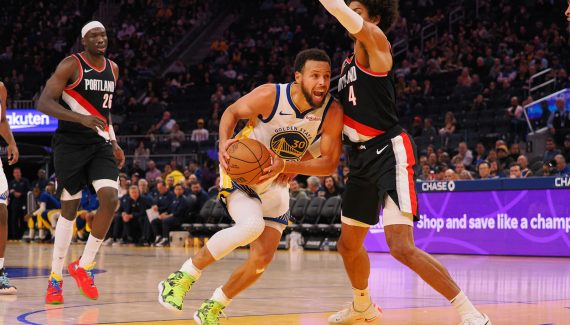 Une formation qui retrouvait Anfernee Simons, et l’arrière avait mis sa formation sur les bons rails avec un gros tir lointain (9-4). Les stars des Warriors sont en dessous de tout, et Shaedon Sharpe en profite pour frapper à 3-points puis s’envoyer en l’air en contre-attaque. Après douze minutes, Portland est devant (26-22).
