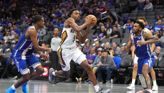 Dépités, JaVale McGee et les Kings voient la balle ricocher, puis tomber dans le cercle. Herb Jones venait de signer un geste aussi rare que peu académique : une claquette avec sa main gauche, pourtant loin du panier car il jouait le rebond, après un raté au lancer-franc de Trey Murphy III au buzzer du premier quart-temps.