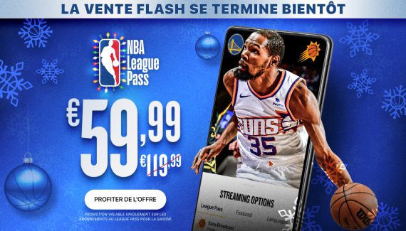 A deux semaines de Noël, la NBA propose une vente Flash de son League Pass, son système de vidéo à la demande, aussi simple à utiliser qu’un compte Netflix. Du 12 au 18 décembre, les offres pour la saison, et uniquement celles-ci, sont à moitié prix. Cela inclut toutes les rencontres de saison régulière, les playoffs, le All-Star Game et un accès à NBA TV.