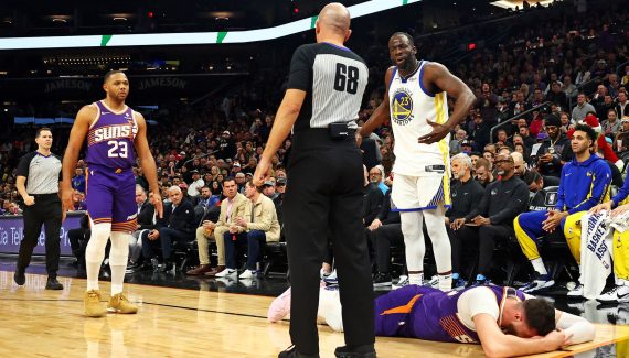 Pour la troisième fois de la saison, Draymond Green est expulsé ! Cette fois, c’est pour une faute Flagrante II, l’équivalent d’une disqualifiante, et c’est amplement mérité puisque l’intérieur des Warriors a collé une vilaine droite à Jusuf Nurkic, au début du 3e quart-temps de la rencontre entre les Suns et les Warriors. Après la défaite de Golden State, Green a assuré que le geste était involontaire, et il a expliqué qu’il essayait de se dégager…