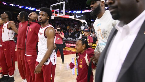 Si USC a perdu un match, 84-79 en prolongation face à Long Beach State, Bronny James, a pour sa part tout gagné ce dimanche. Pour son premier match universitaire officiel après avoir été victime d’un arrêt cardiaque il y a bientôt cinq mois, et sous les yeux de son père et des frère et soeur, l’aîné des fils James a repris en compilant 4 points, 3 passes décisives et 2 rebonds en 16 minutes.