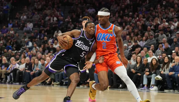 Sacramento tient le bon bout, et Sasha Vezenkov donne 13 points d'avance (105-92). Les Kings maitrisent leur sujet, jusqu'à ce “money time” où Jalen Williams se réveille avec une claquette, puis Josh Giddey ponctue un 6-0 pour revenir à -2 (119-117). De'Aaron Fox rappelle qu'il n'est pas le joueur le plus “clutch” de la NBA pour rien, et il s'en va défier Chet Holmgren. C'est finalement Keegan Murray qui assure la victoire des Kings, la 3e en quatre matches, pour reprendre les commandes de la division Pacific.