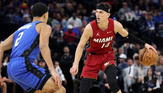 Sans Jimmy Butler ni Kevin Love, c’est Tyler Herro (28 points, 8 rebonds, 7 passes) qui a guidé le Heat lors du derby floridien. Notamment lors de ce 17-0 dans le deuxième quart-temps, réalisé avec l’aide de Duncan Robinson et Haywood Highsmith, qui a permis à Miami de prendre le large. Paolo Banchero finit de son côté avec 10 points à un affreux 2/12 au tir…