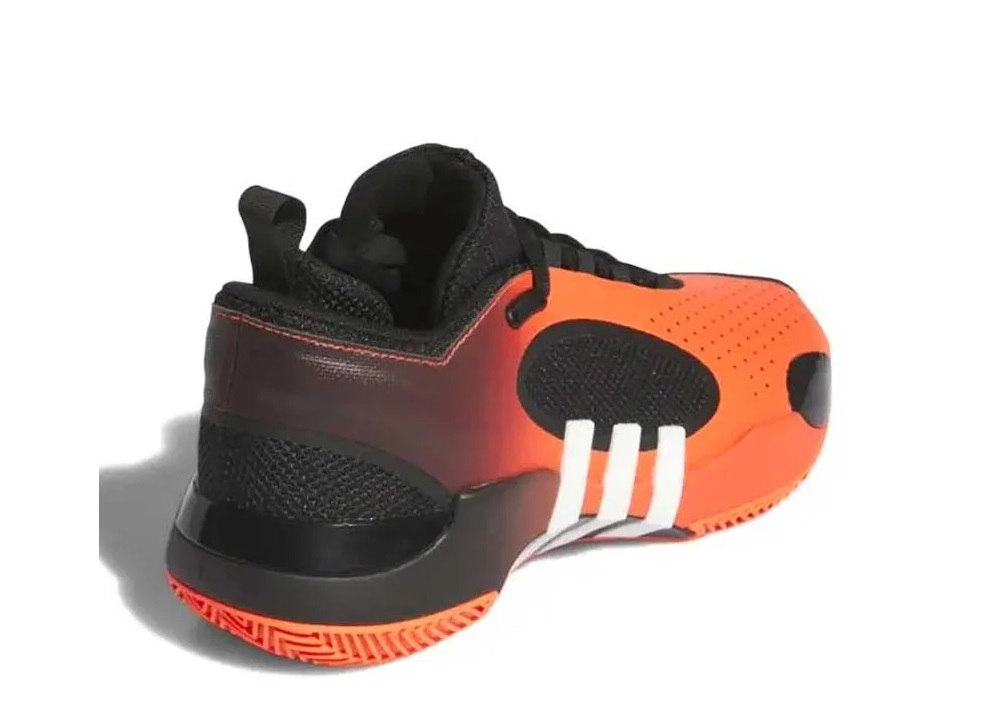 La tige, composée en matière synthétique, se présente en orange et noir. Même chose pour la semelle, équipée d’un amorti LightStrike et d’une semelle extérieure en caoutchouc. Les trois bandes d’adidas ressortent en blanc sur les parties latérales. A noter que la tige est confectionnée à hauteur de 50% à partir de matériaux recyclés.