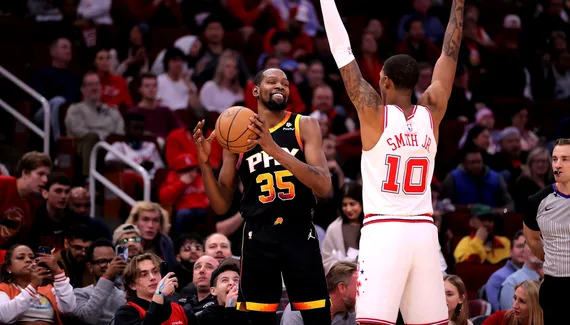 Ce n'est pas tous les jours que Kevin Durant se transforme en LeBron James… Parce que les Suns restaient sur trois défaites de suite, et parce qu'il y avait clairement une coupure entre le duo Booker-Durant et leurs coéquipiers, l'ailier All-Star avait décidé d'entamer la rencontre face aux Rockets comme créateur. Ce sont Eric Gordon et Jusuf Nurkic qui en profitent en début de match, et c'est ce qui va permettre aux Suns de passer une soirée des plus tranquilles.