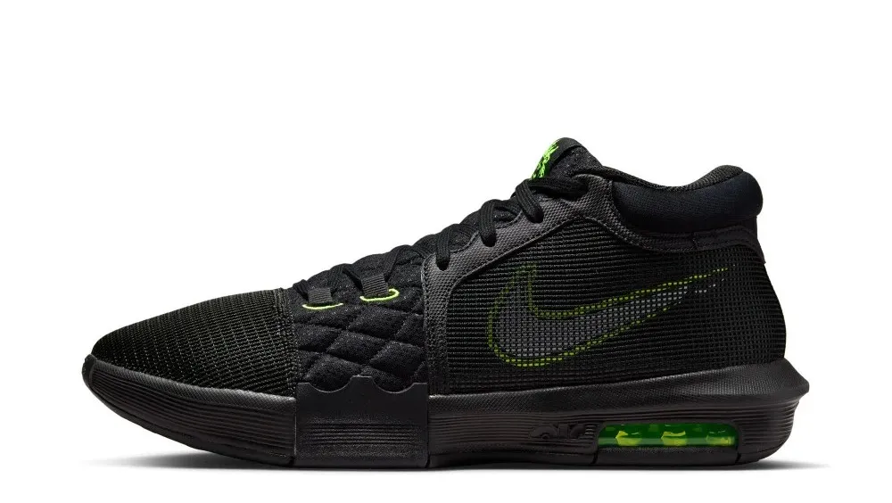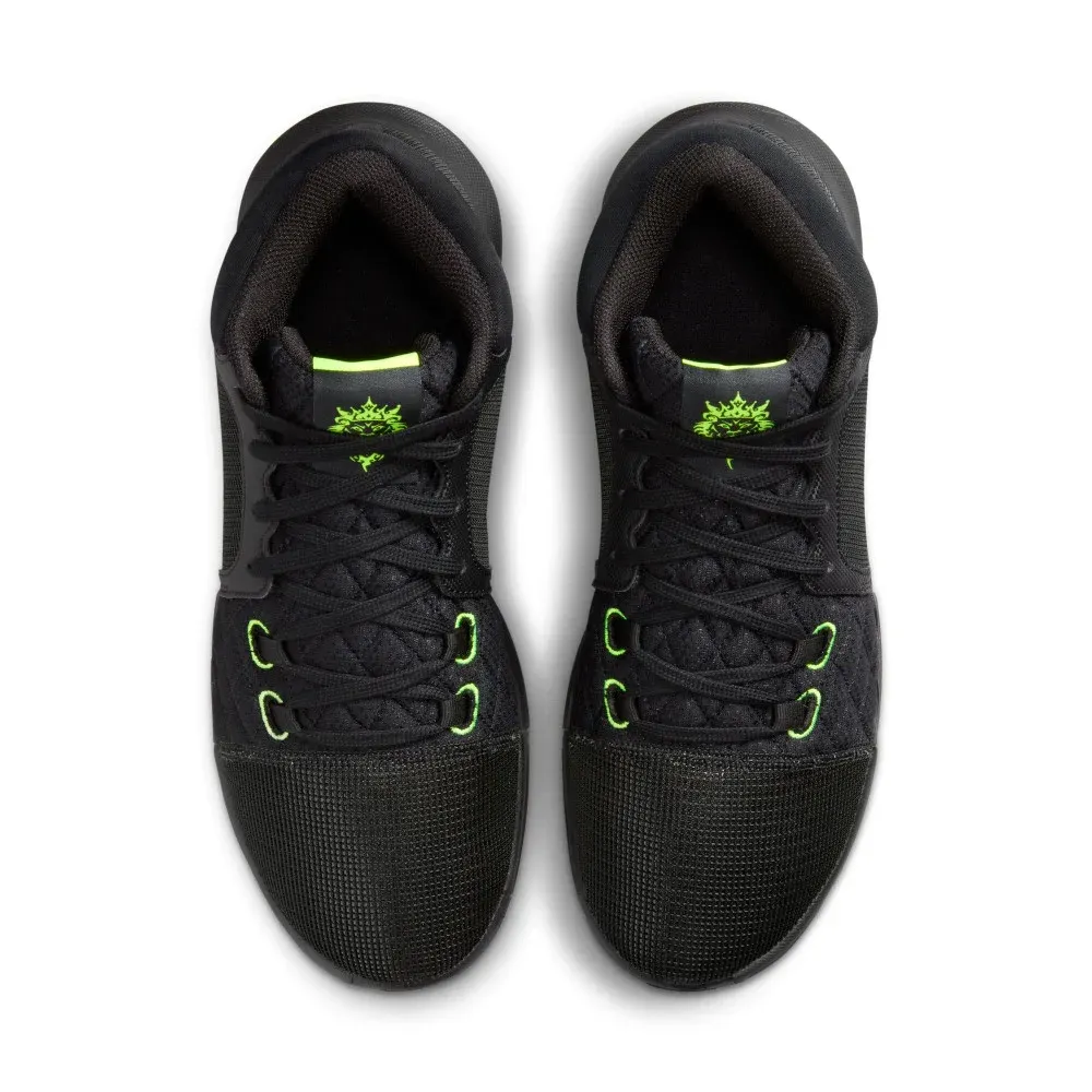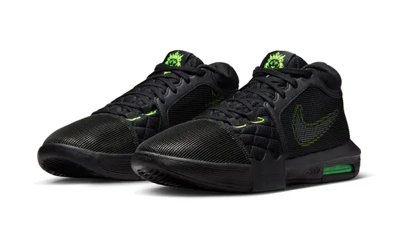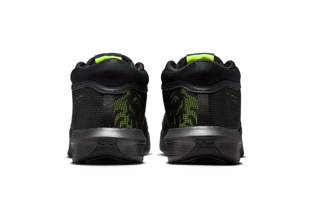 Sur cette dernière version, la tige est principalement noire, avec quelques finitions en vert fluo pour pimenter le tout, pour orner le « Swooosh » ou le motif de lion, également présent sur la languette.