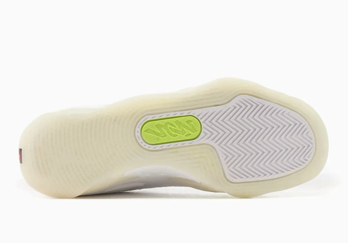 Il se distingue par son revêtement en vert pâle sur la tige et une partie de la semelle intermédiaire. L'ensemble est complété par du blanc et des finitions en noir, au niveau du col, de la languette et du logo Zion présent sur le talon.