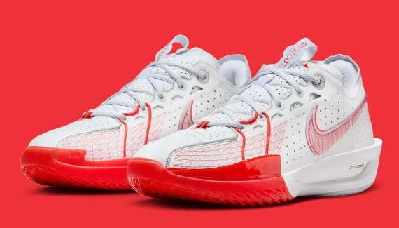 Le design et la coupe, plus basse, ont été repensés et la tige est complété par des câbles Flywire pour un meilleur maintien à l’avant du pied et des parois en TPU. Mais la grande nouveauté de la Nike GT Cut 3, qui est aussi plus légère, réside dans sa semelle intermédiaire qui sera composée d’une toute nouvelle mousse pour une chaussure de basket, la Zoom X. Sur ce premier coloris, on part sur du blanc et orange avec des finitions en gris. De nombreux autres coloris devraient rapidement suivre.