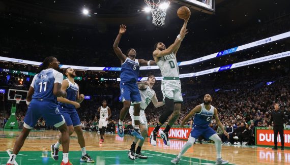 Il faut voir le visage ferme de Jayson Tatum au moment d’inscrire le « dagger ». Assez folle, la séquence illustre le niveau d’intensité de ce choc entre Celtics et Wolves. L’ailier All-Star vient de battre en dribble Karl-Anthony Towns malgré les contacts, puis Jrue Holiday pique dans la foulée le cuir à Anthony Edwards avant de servir son coéquipier en transition.